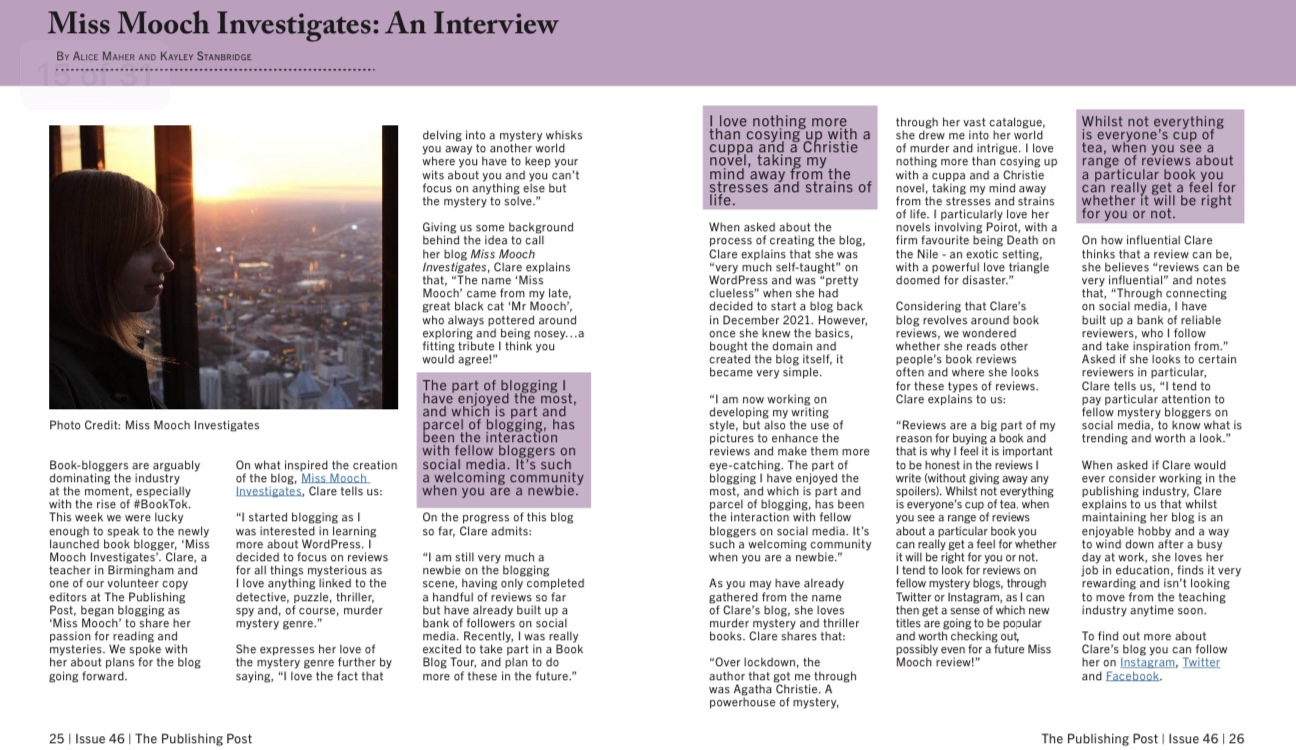 I was really chuffed to be interviewed by The Publishing Post about Miss Mooch Investigates! 🕵️‍♀️